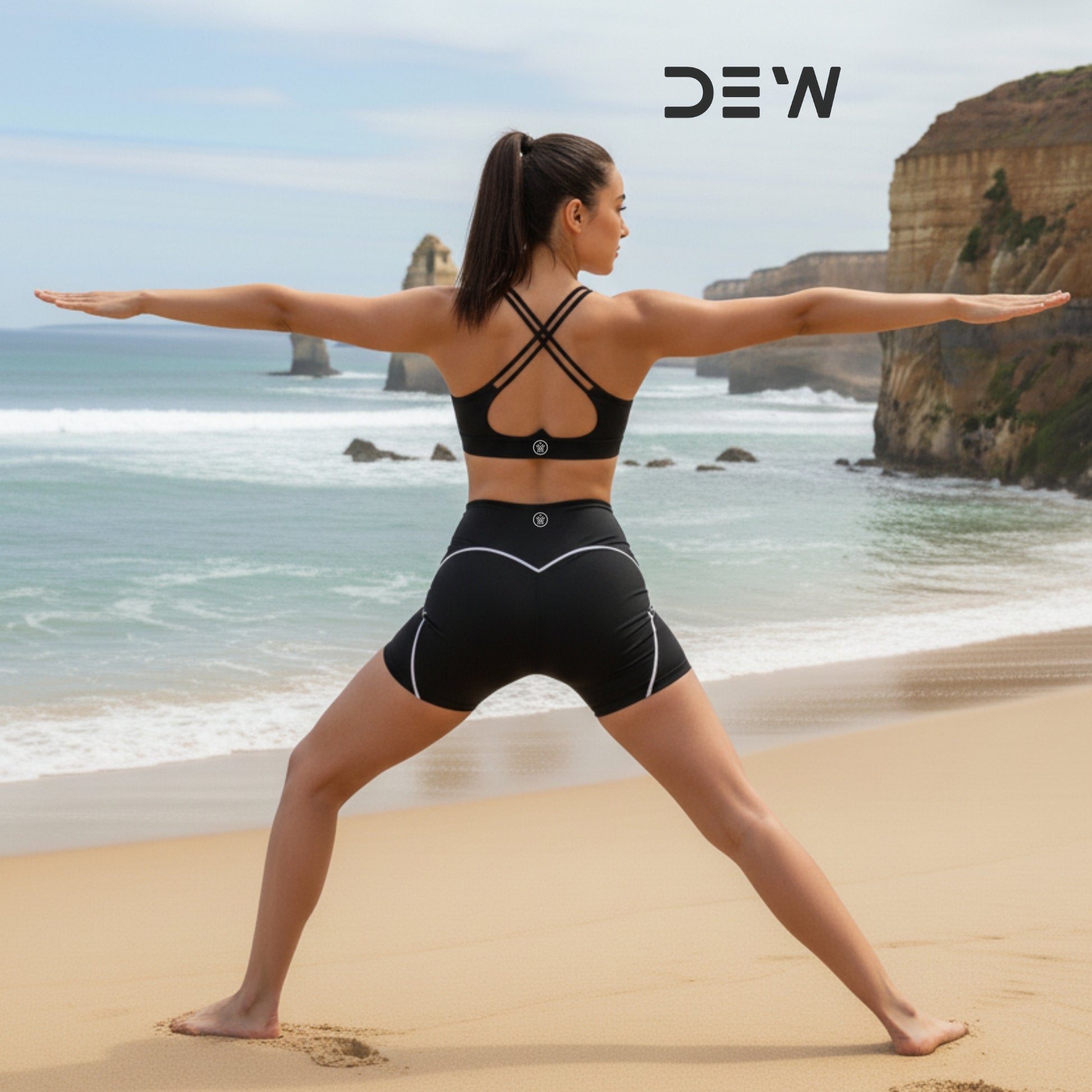 Elevate your movement and your style with the DEW Heart Flex Bra in classic Bold Black. This sleek sports bra is an essential piece in any activewear collection, engineered for comfort, support, and unrestricted movement.